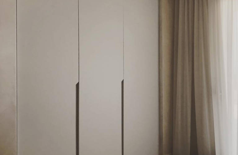 L’illuminazione LED all’interno ed all’esterno degli Armadi Hangar, in questa immagine possiamo notare la gola illuminata dell’anta Light della collezione Hangar.